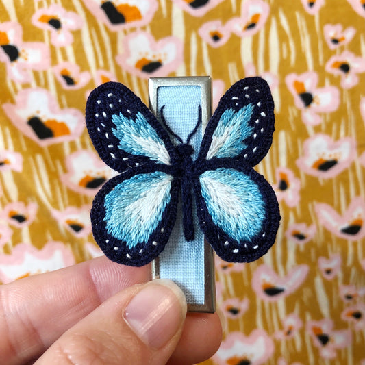 In this 3 hour class you’ll learn how to make wire slip butterfly wings. These wings will be moveable and flutter away from the fabric. The butterfly will be mounted onto a brooch base so you can wear your creation.