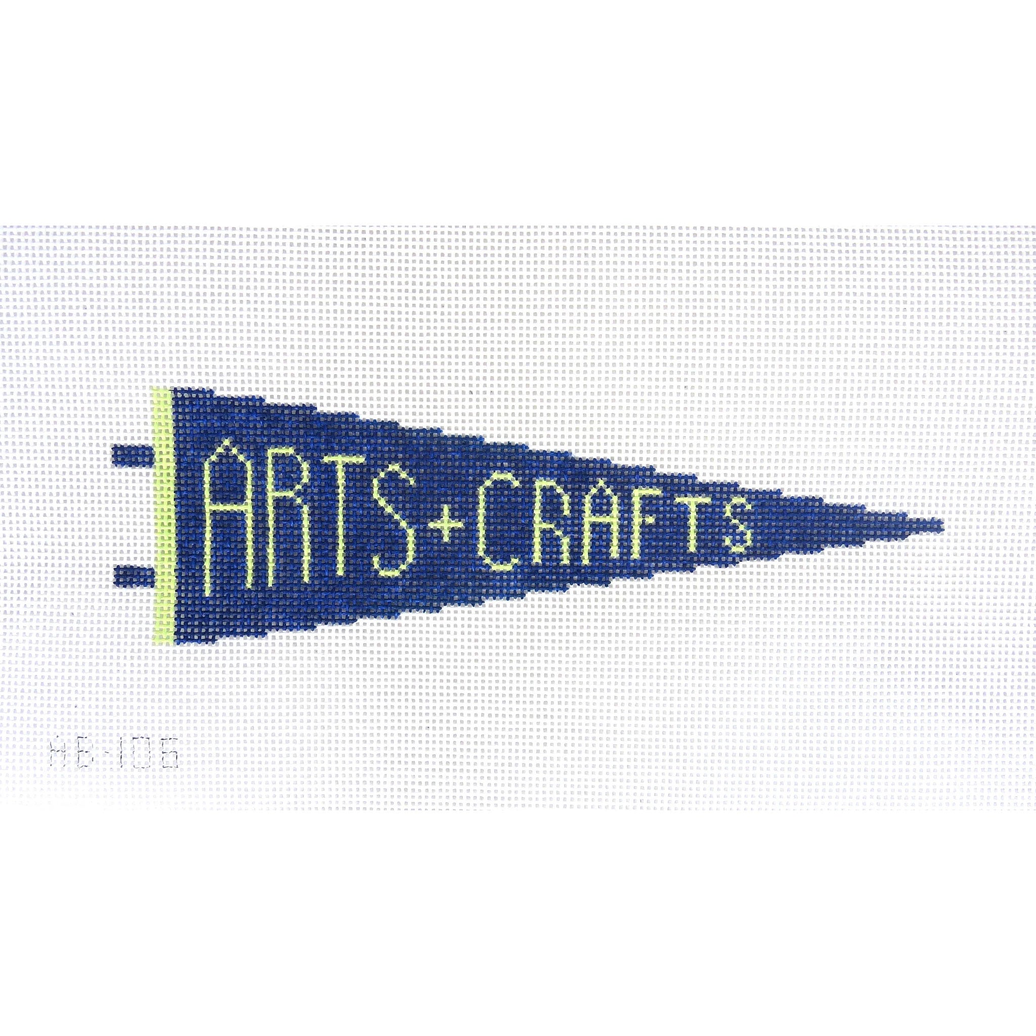 This hand painted needlepoint canvas from Alice & Blue features a pennant flag emblazoned with Arts & Crafts.
