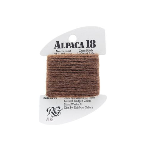 This is Alpaca from Rainbow Gallery in color 088 Chestnut. Made with real Alpaca! Perfect for fur and beards. 2 ply on 13 mesh, 1 ply on 18 mesh.