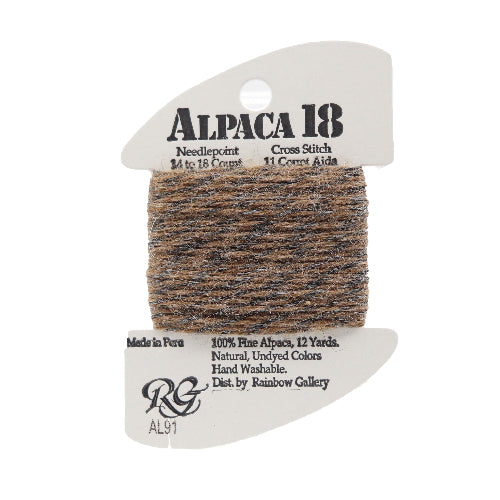 This is Alpaca from Rainbow Gallery in color 091 Cobblestone. Made with real Alpaca! Perfect for fur and beards. 2 ply on 13 mesh, 1 ply on 18 mesh.