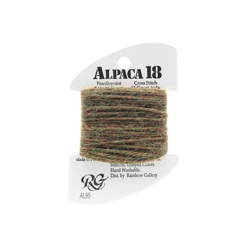 This is Alpaca from Rainbow Gallery in color 095 Tundra. Made with real Alpaca! Perfect for fur and beards. 2 ply on 13 mesh, 1 ply on 18 mesh.