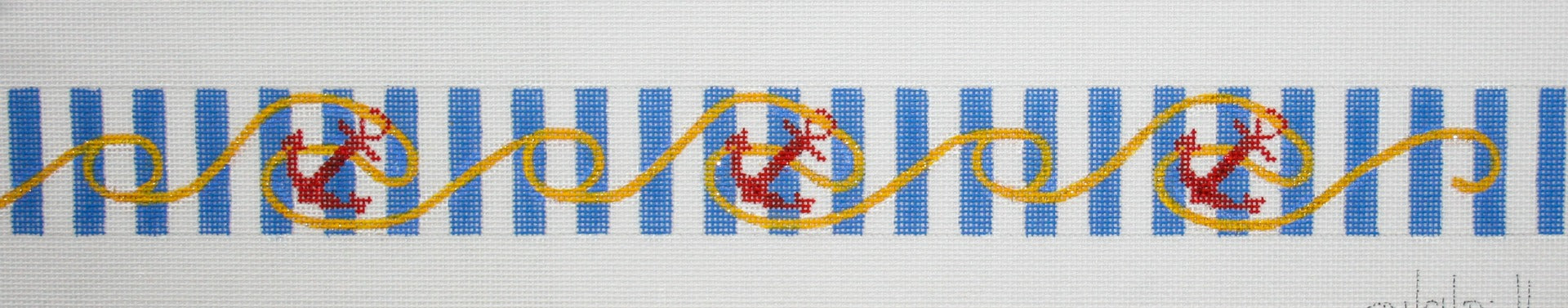 Kate Dickerson Needlepoint Collections Anchors On Blue Cabana Belt Needlepoint Canvas