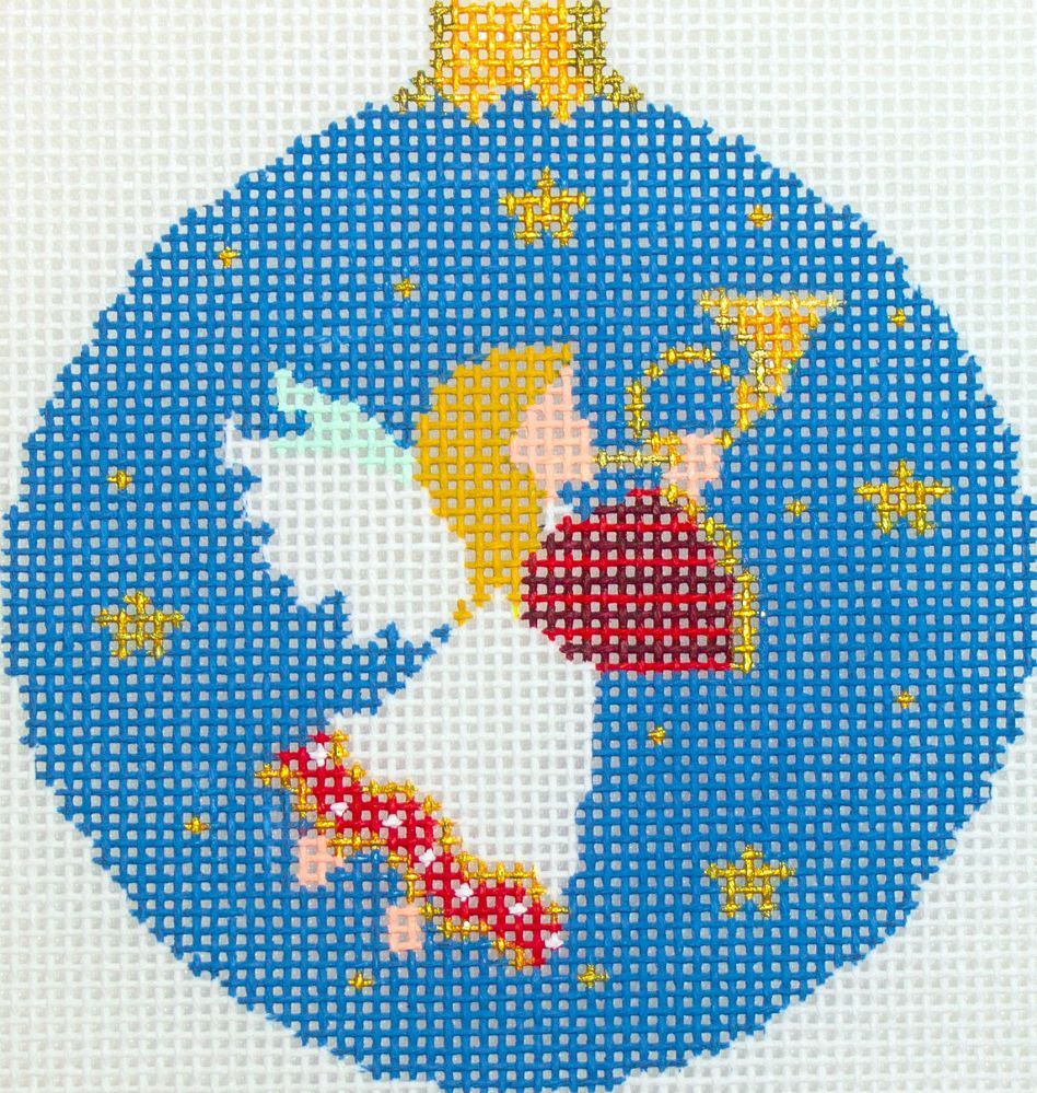 Susan Roberts Needlepoint Angel with Horn Needlepoint Canvas is a hand painted needlepoint canvas from Susan Roberts Needlepoint.