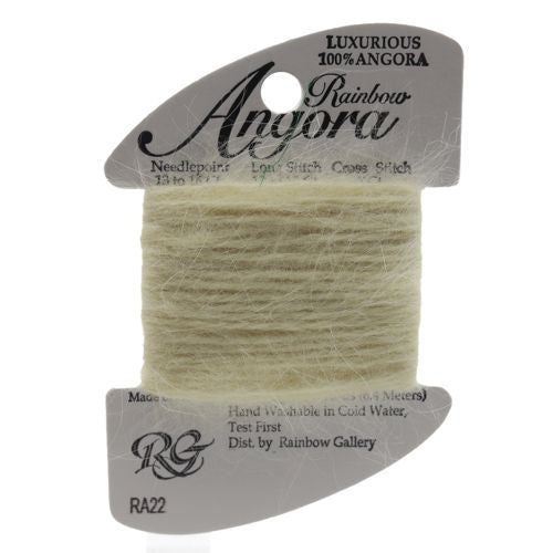 This is Angora from Rainbow Gallery in color 22 Yellow. Made with real Angora! Perfect for fur and beards. 2 or 3 ply on 13 mesh, 1 or 2 ply on 18 mesh.