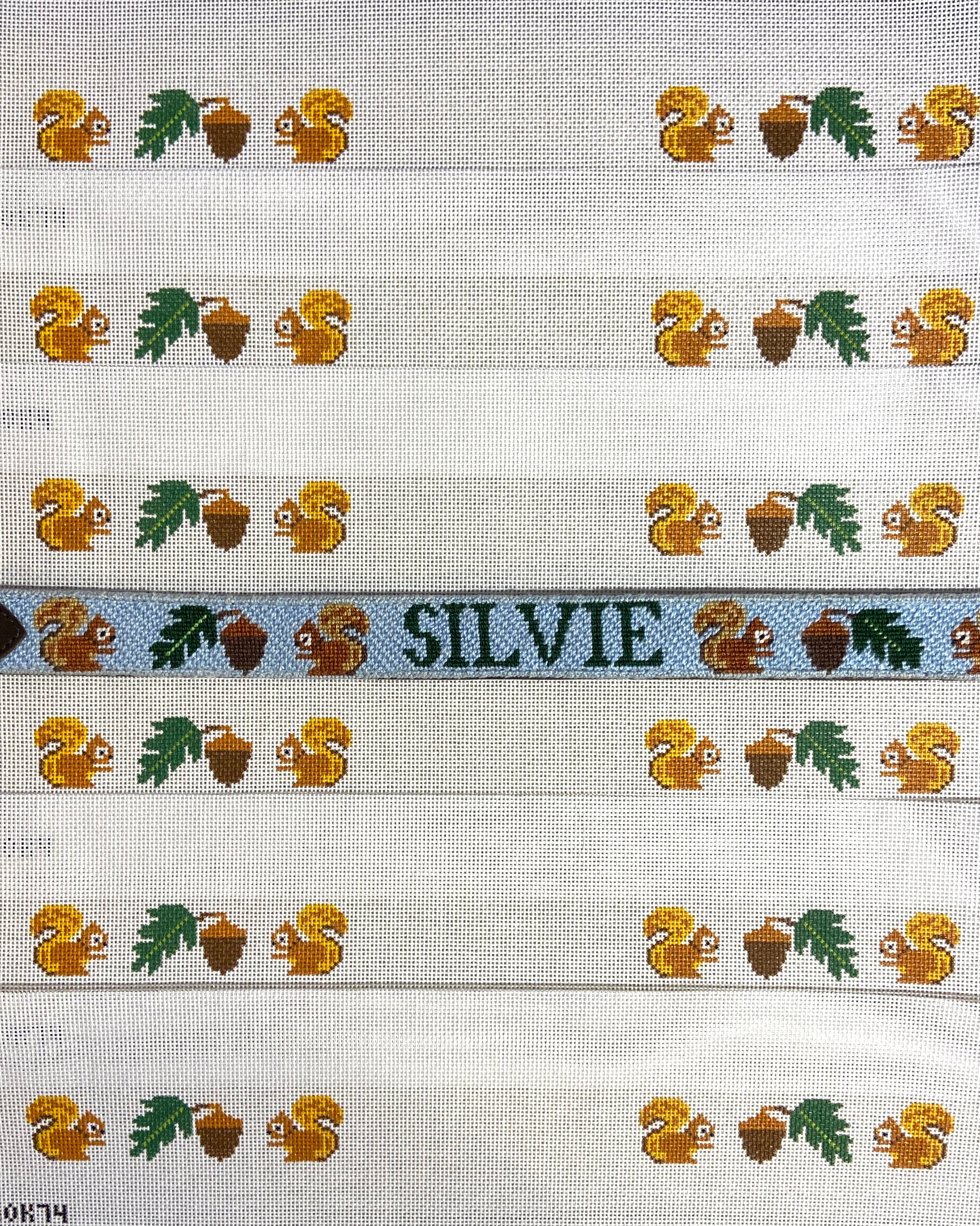 This hand painted needlepoint canvas by Ann Kaye Studio. Stitched example shown for inspiration, materials and finishing service sold separately.