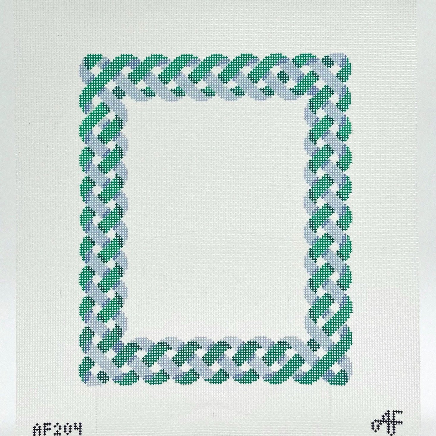 A beautiful hand painted needlepoint design from Anne Fisher Designs. This frame fits a 5" x 7" picture