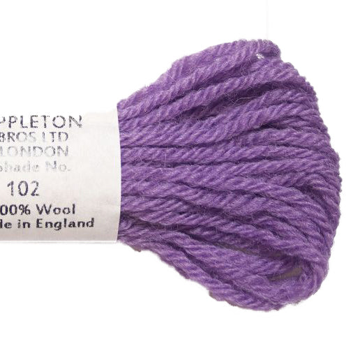 This is Tapestry from Appleton in color 102 Purple Medium Light. A very traditional needlepoint thread. Use as-is on 13 mesh. Excellent for rugs and pillows.