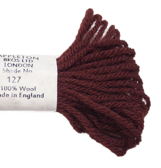 This is Tapestry from Appleton in color 127 Terra Cotta Very Dark. A very traditional needlepoint thread. Use as-is on 13 mesh. Excellent for rugs and pillows.