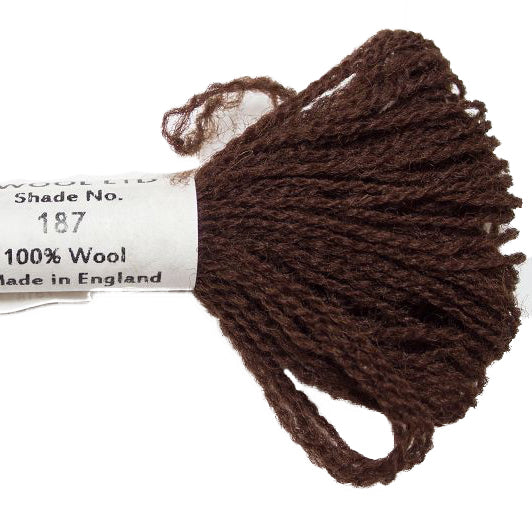This is Tapestry from Appleton in color 187 Chocolate Dark. A very traditional needlepoint thread. Use as-is on 13 mesh. Excellent for rugs and pillows.