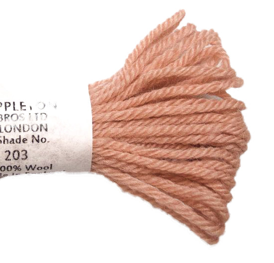 This is Tapestry from Appleton in color 203 Flame Red Medium Light. A very traditional needlepoint thread. Use as-is on 13 mesh. Excellent for rugs and pillows.