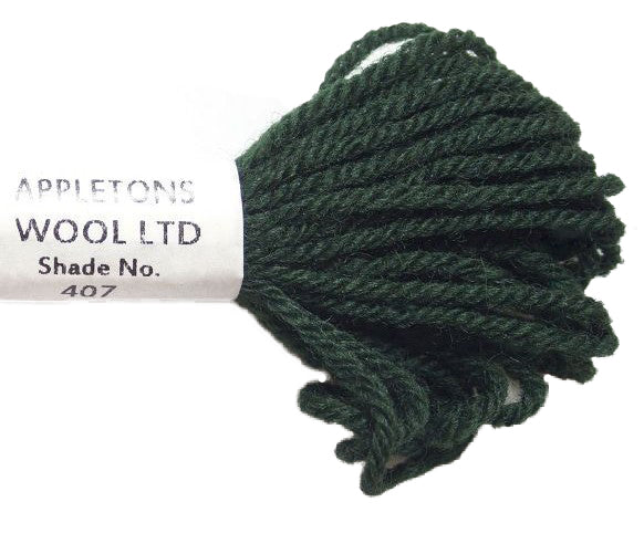 This is Tapestry from Appleton in color 407 Sea Green Very Dark. A very traditional needlepoint thread. Use as-is on 13 mesh. Excellent for rugs and pillows.