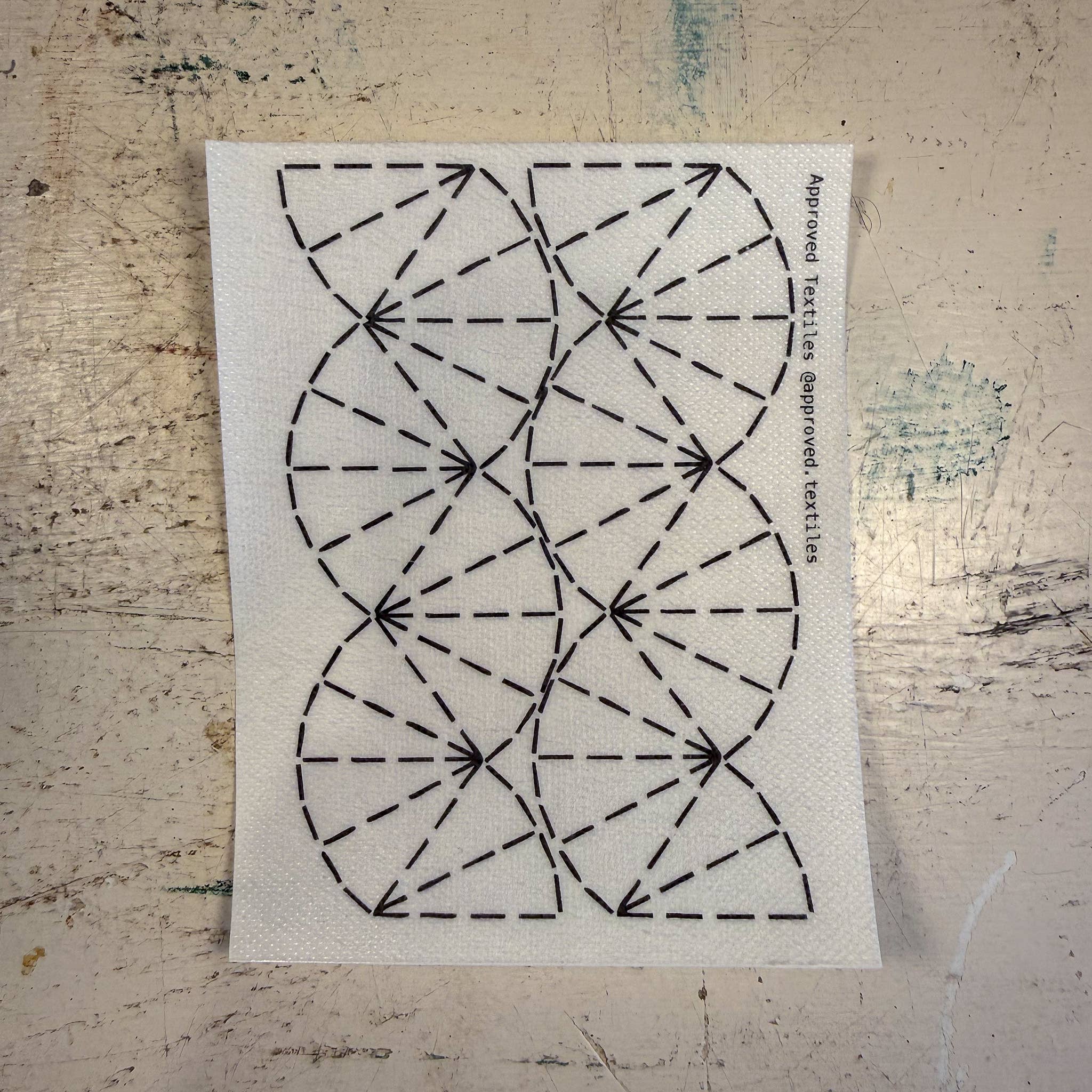 Battoirs were historically used across Europe to beat rugs, pushing fibers into place and creating durable, textured surfaces. This transfer set from Approved Textiles draws inspiration from those tools, turning their geometry, rhythm, and repetition into hand-stitching designs for visible mending or other decorative embroidery.