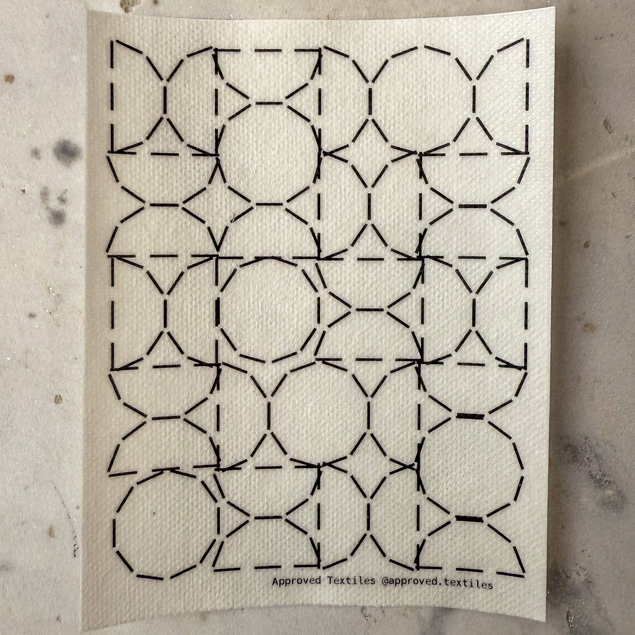 Form follows function—and leaves a beautiful mark behind. Inspired by to the design movement that reshaped the modern world, this transfer set from Approved Textiles features arcs, perspective, circles, and sections. In under two hours, these designs can add a crisp, dimensional touch to garments in need of care or transformation through visible mending or decorative embroidery.