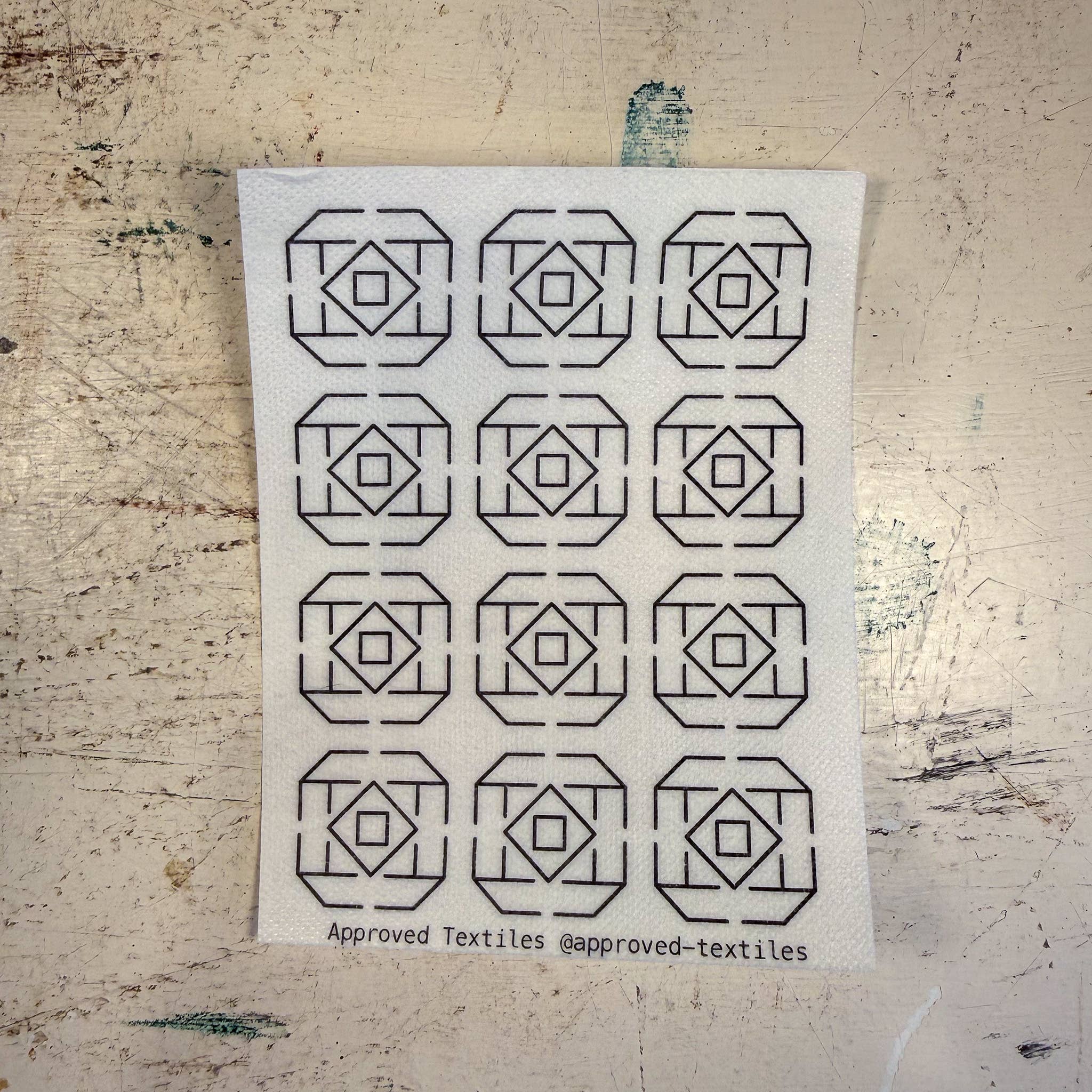 Hana fukin sashiko panels are a classic form of Japanese flower cloth designed for hand stitching with floral motifs that celebrate seasonal blooms and traditional decorative forms. These designs, rooted in a centuries‑old practice of embroidered household cloths, translate beautifully into visible mending or decorative embroidery patterns that bring both structure and botanical rhythm to worn textiles. Floral motifs echo the stitched forms of traditional hana fukin samplers, reinforcing fabric while adding rhythmic, organic structure.
