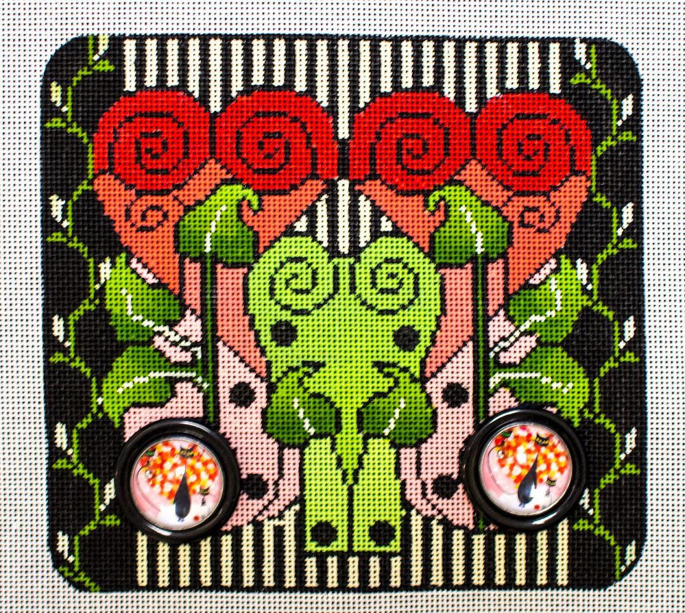 A beautiful hand painted needlepoint canvas from Mindy's Needlepoint Factory. Includes cat button embellishments.