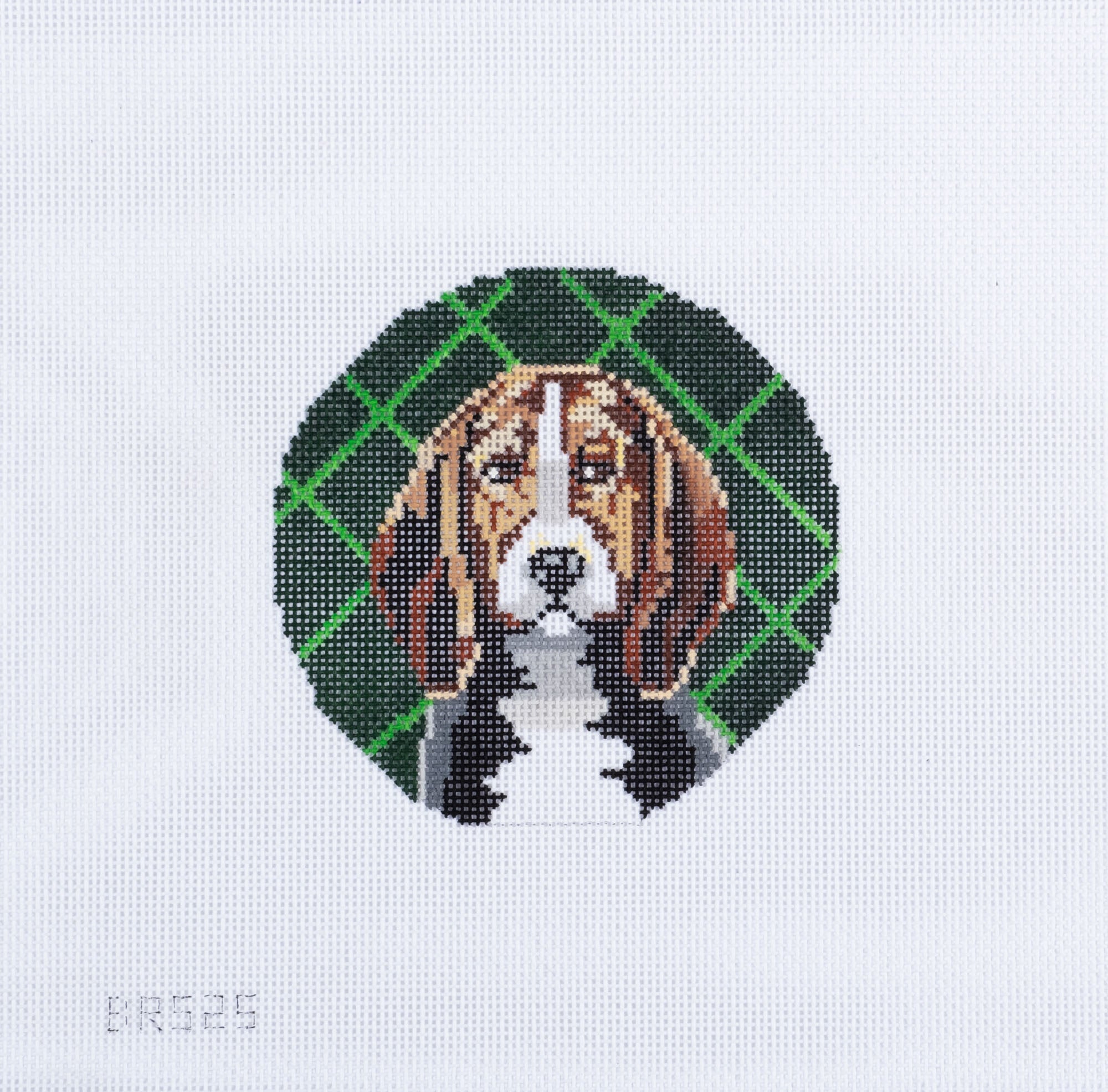 Barbara Russell Beagle Dog Round Ornament Needlepoint Canvas