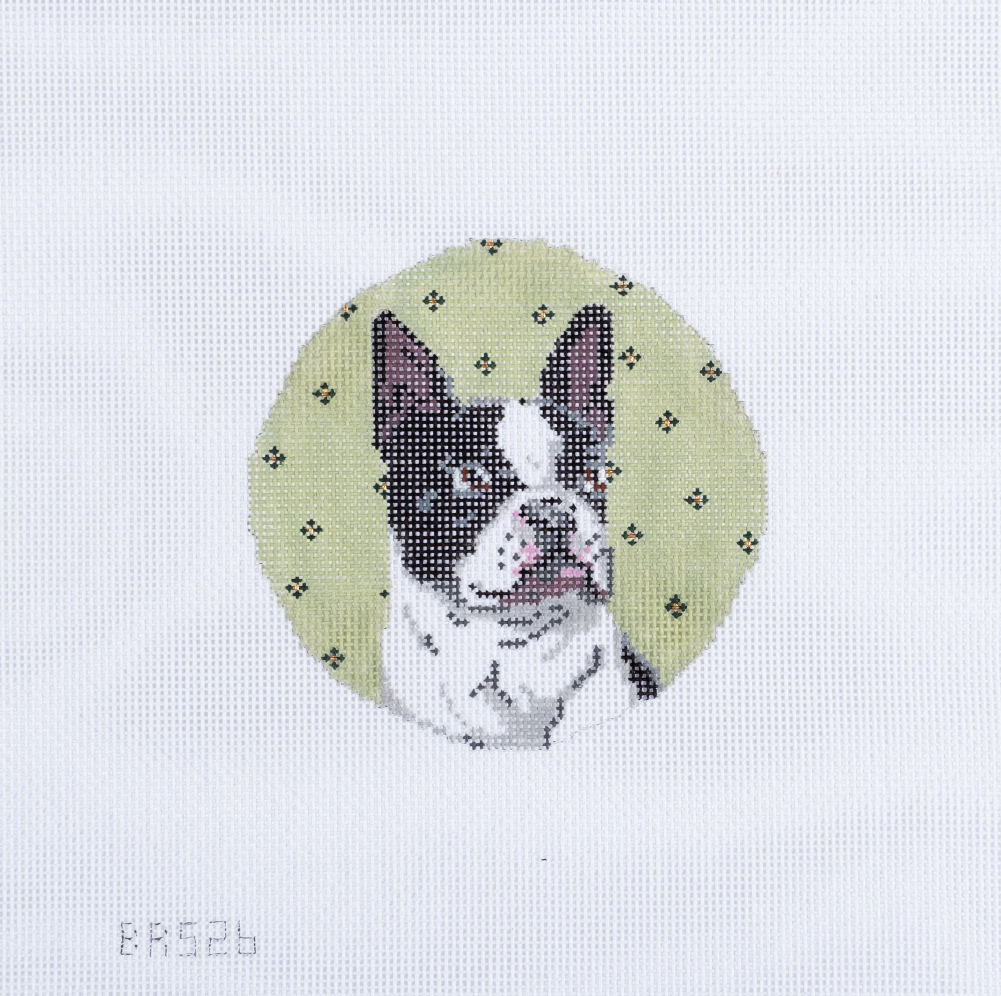 Barbara Russell Boston Terrier Dog Round Ornament Needlepoint Canvas