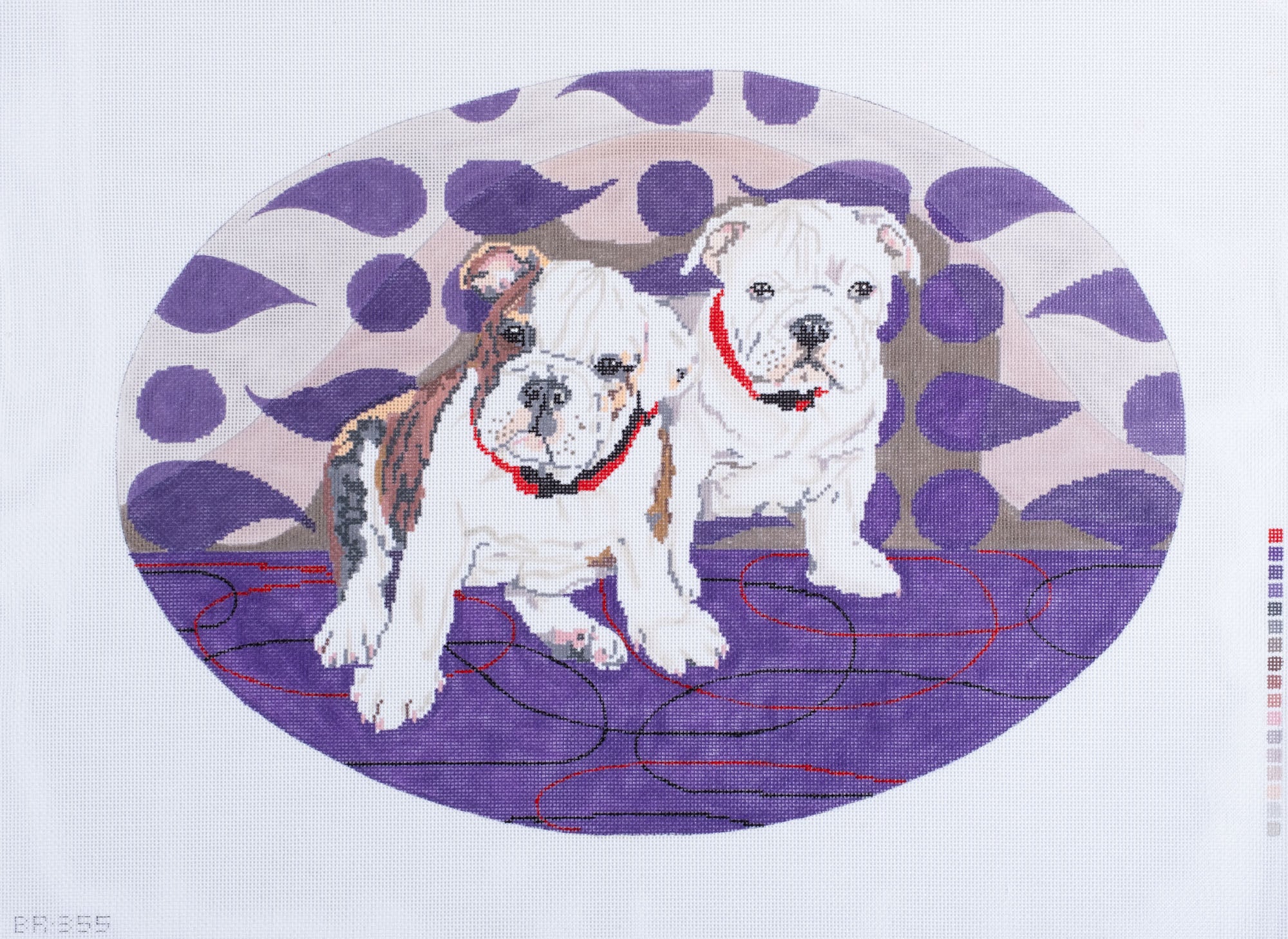 Barbara Russell Bulldog Pups Needlepoint Canvas