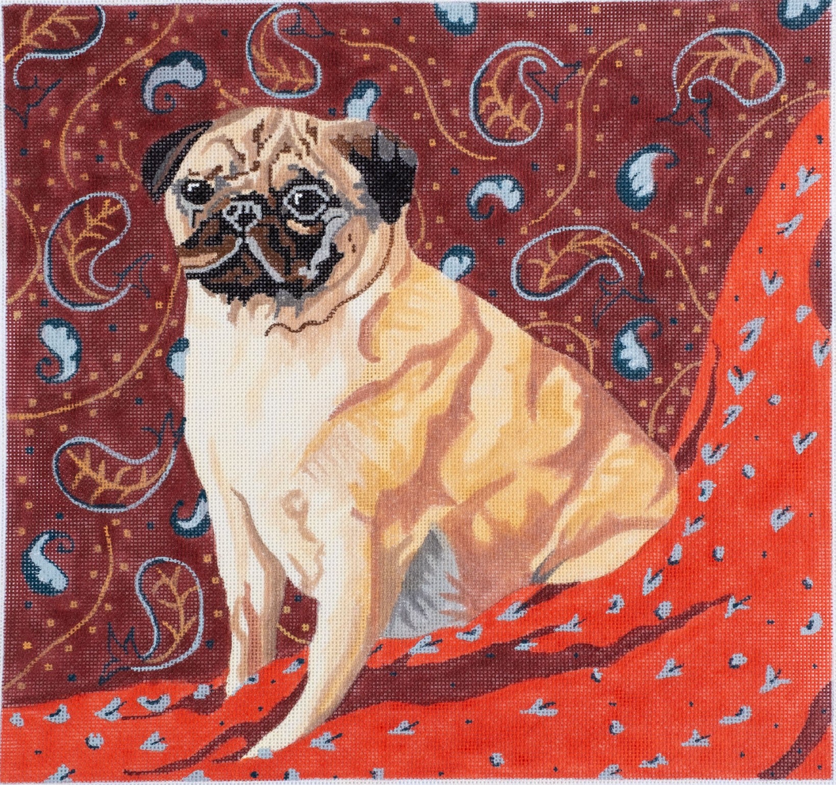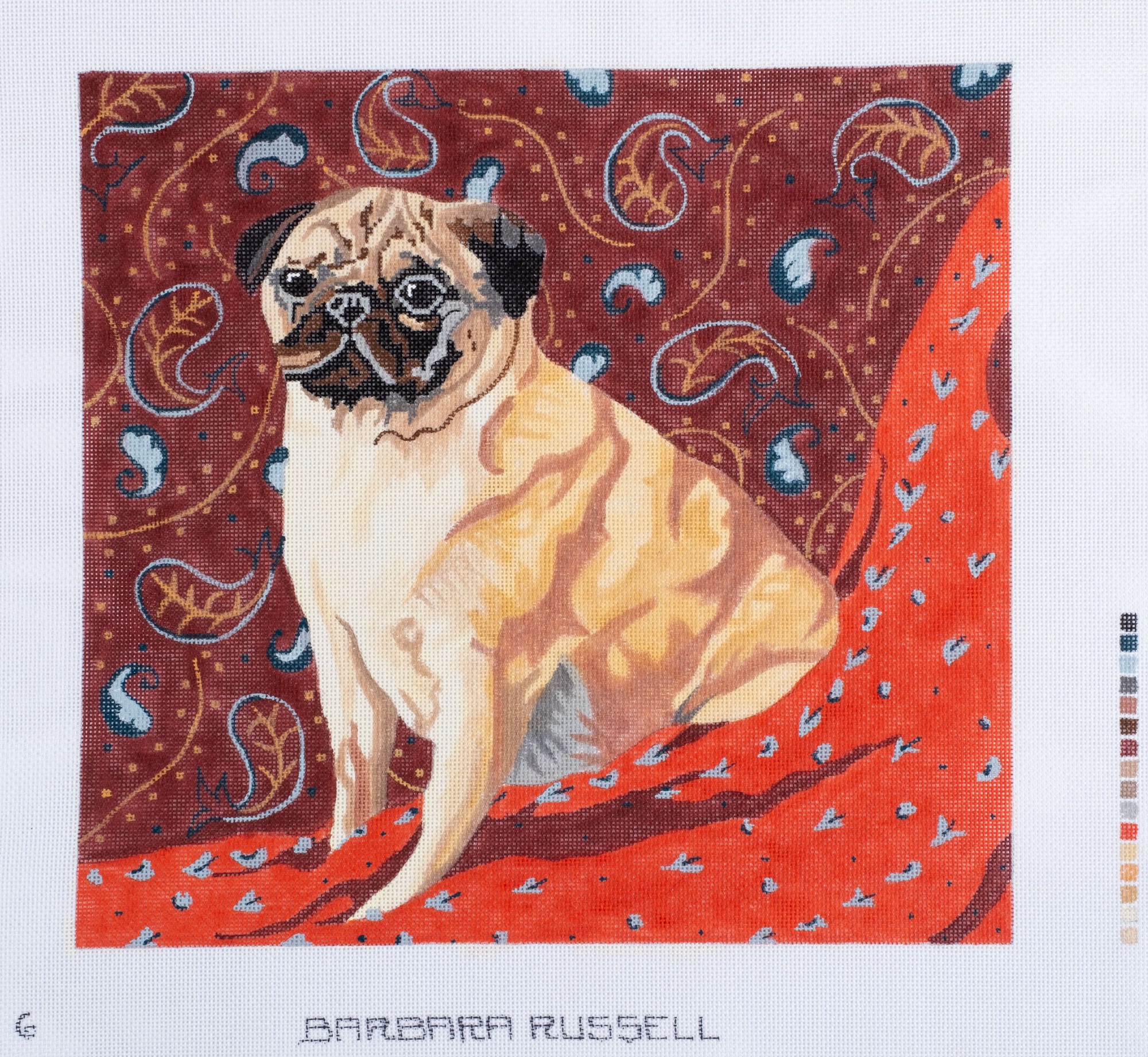 Barbara Russell Designs Pug Dog on Paisley Needlepoint Canvas