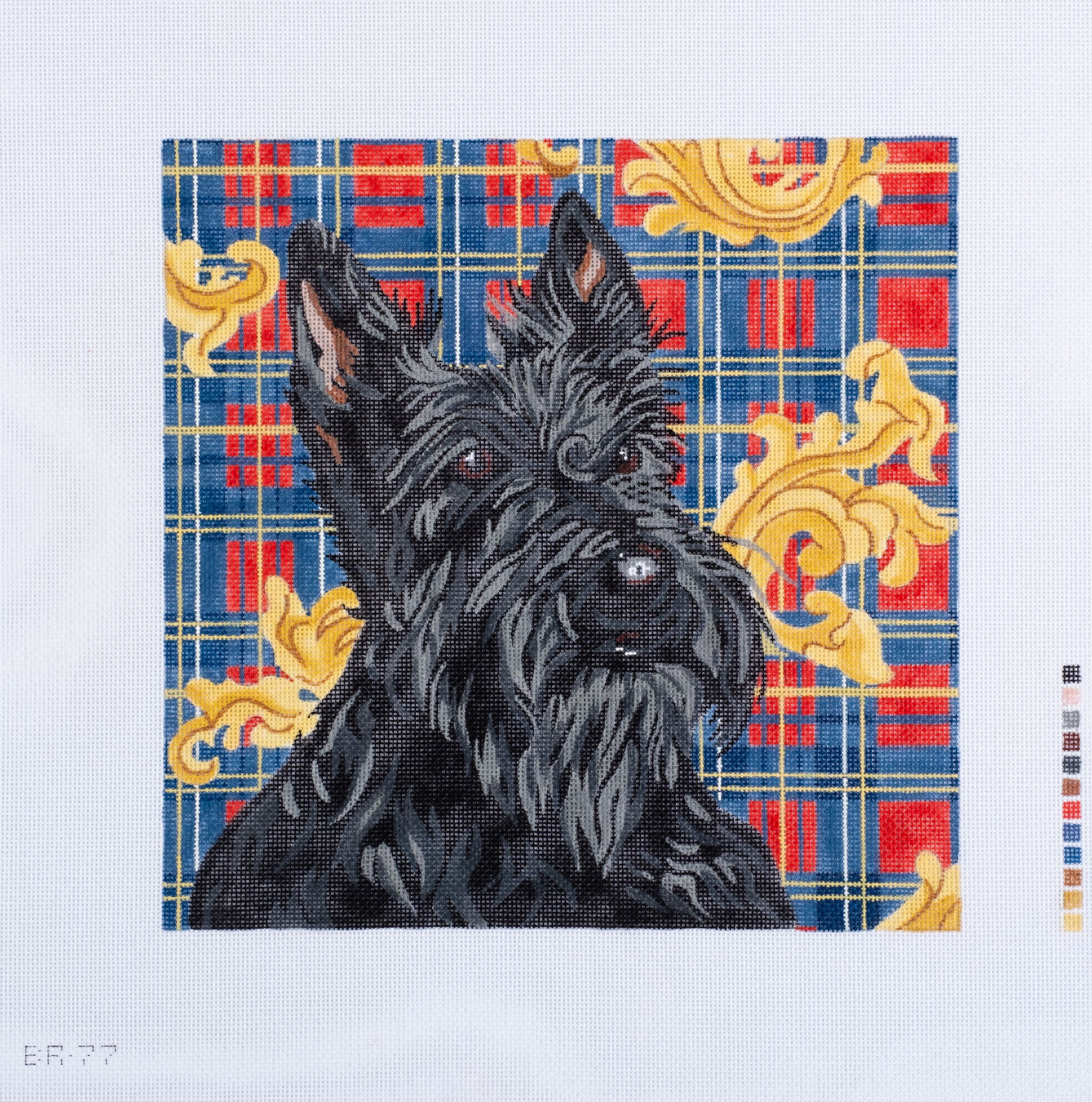 Barbara Russell Designs Scottie Dog with Plaid Background Needlepoint Canvas
