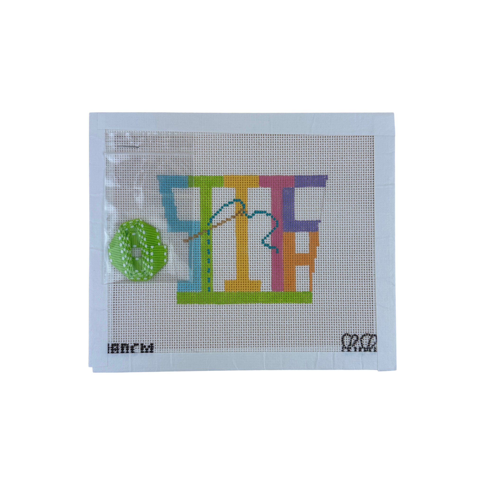 This hand painted needlepoint canvas features a mini tote bag with Stitch.