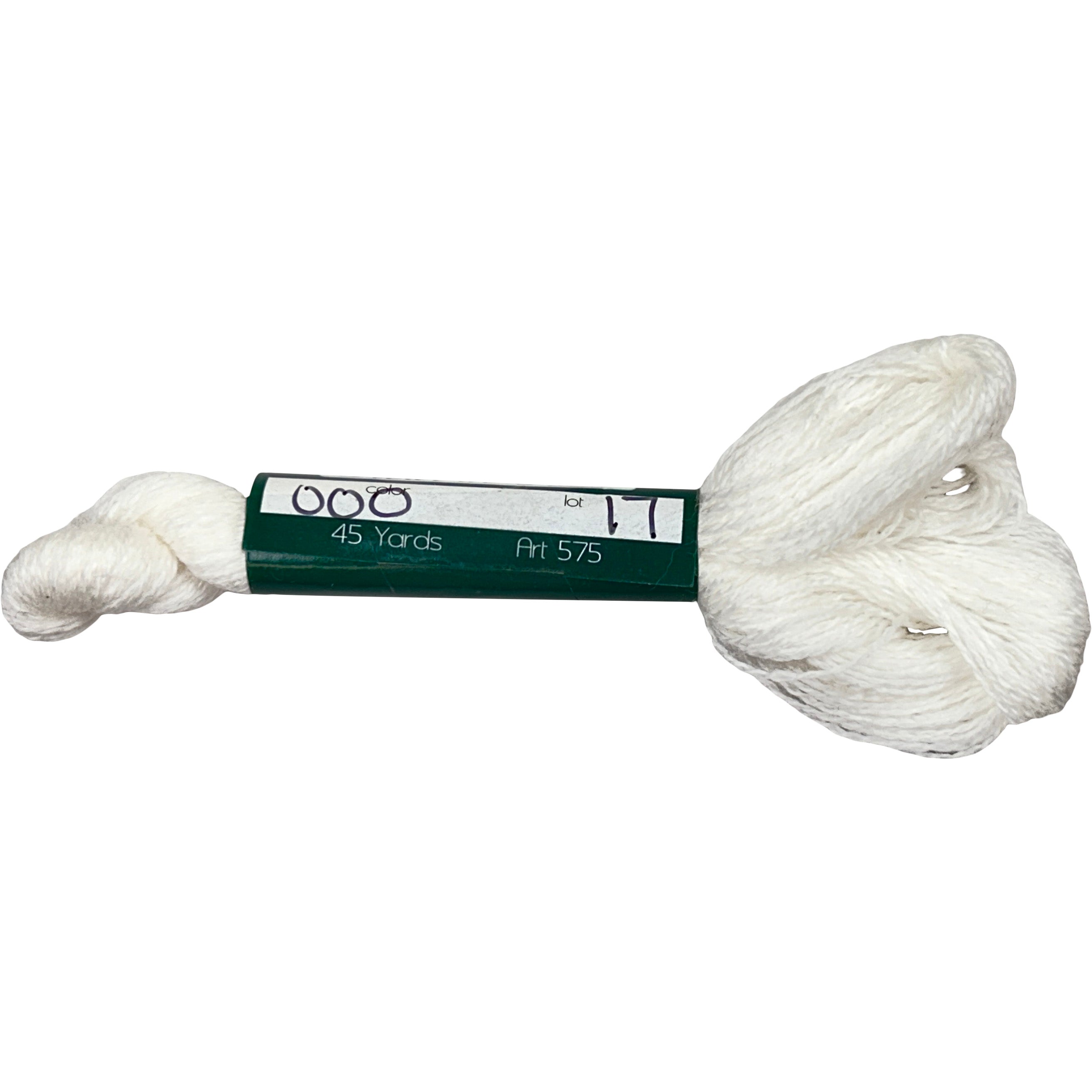 This is Merino Wool from Bella Lusso in color 0000 Blanc. 3 ply on 18 mesh. Good for darning!