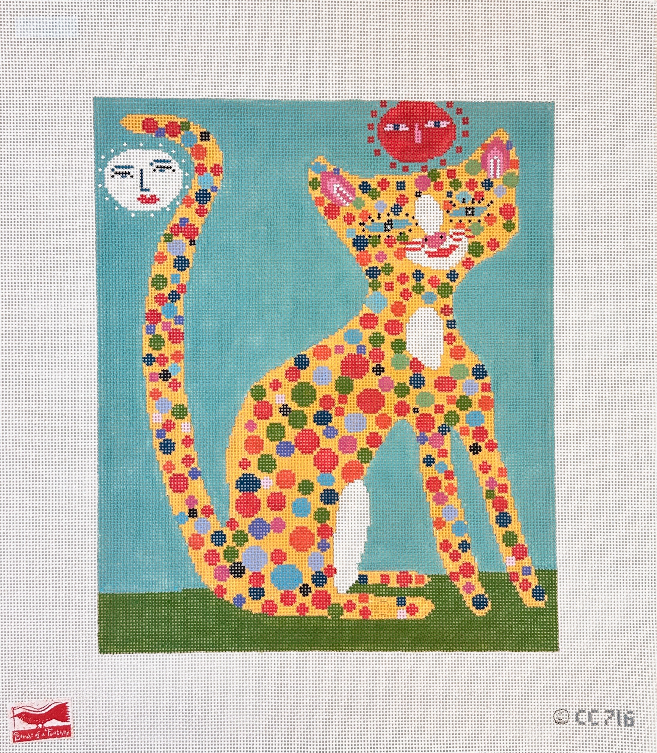 This is a hand painted needlepoint canvas by Christopher Corr from Birds of a Feather. It features a spotted leopard.
