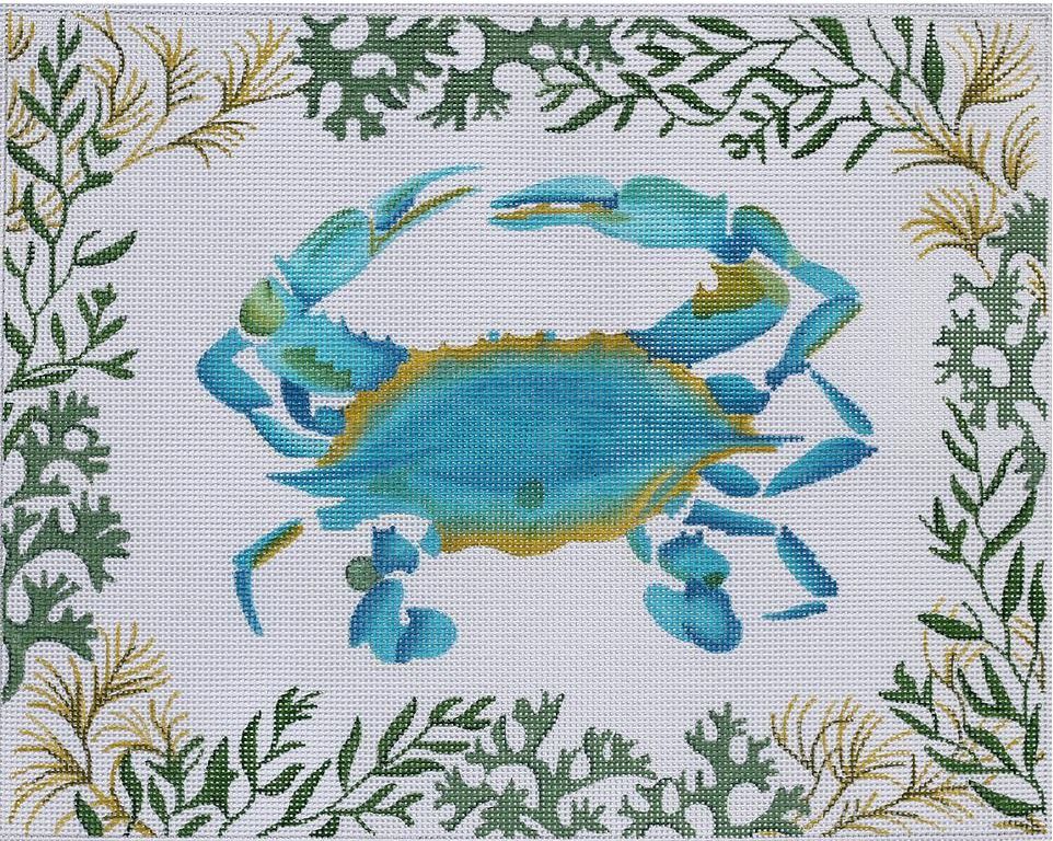 Kate Dickerson Needlepoint Collections Blue Crab with Mixed Seaweeds Needlepoint Canvas