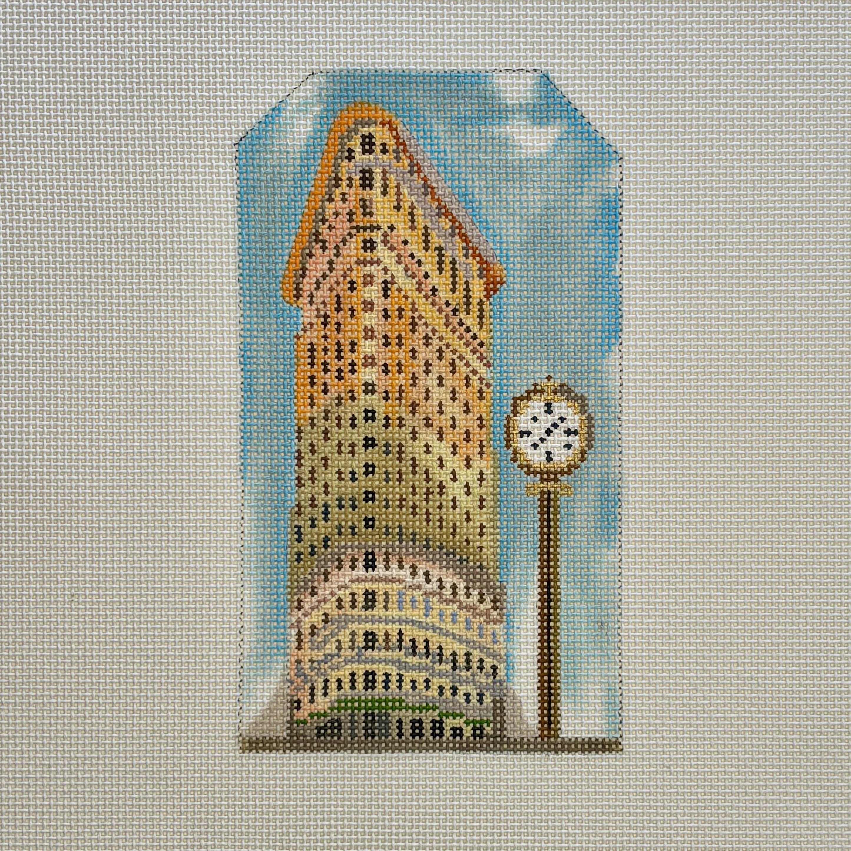 This hand painted needlepoint canvas from Blue Ridge Stitchery features the iconic triangular building in NYC's Flatiron district.
