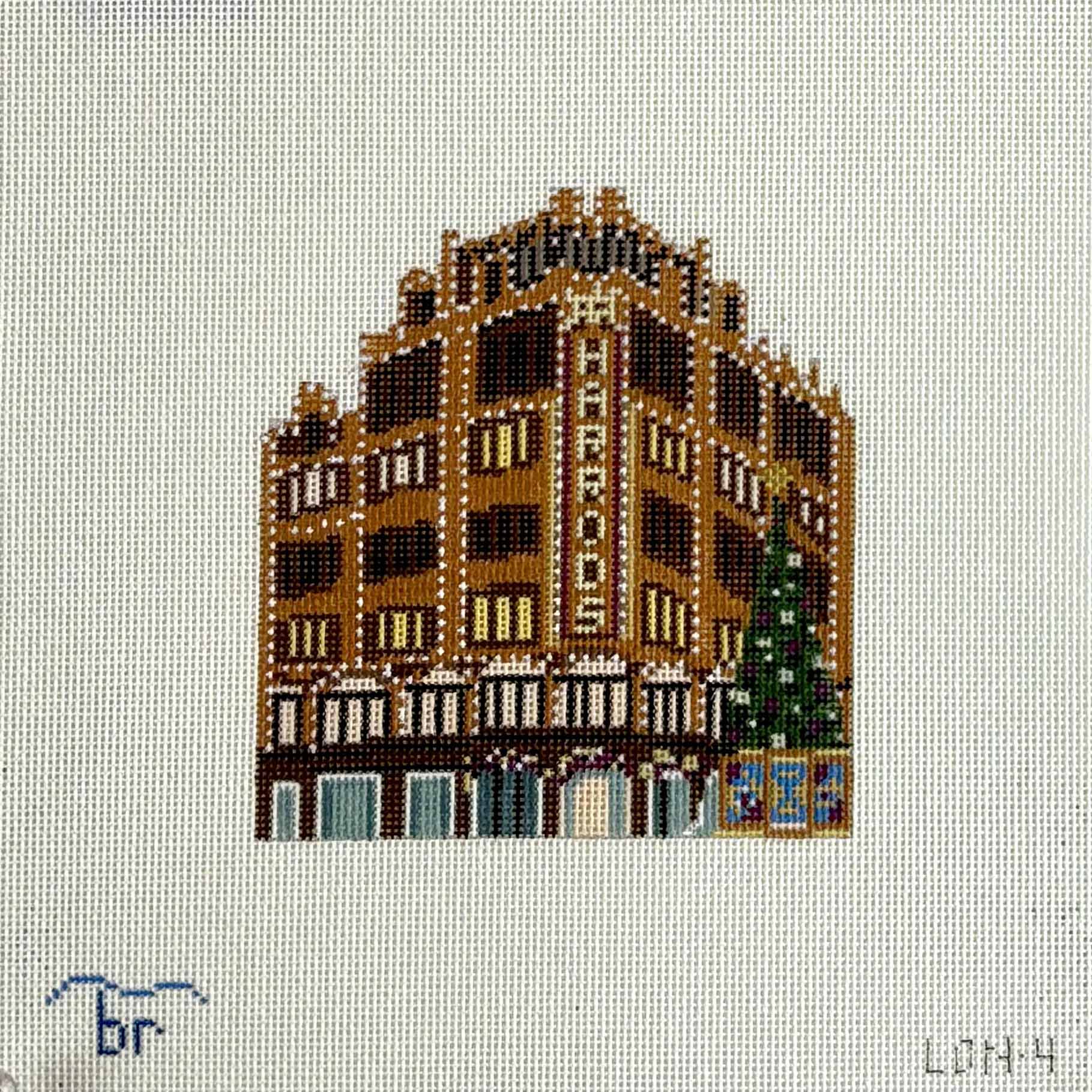 This hand painted needlepoint canvas from Blue Ridge Stitchery features the beloved Harrod's flagship in London.