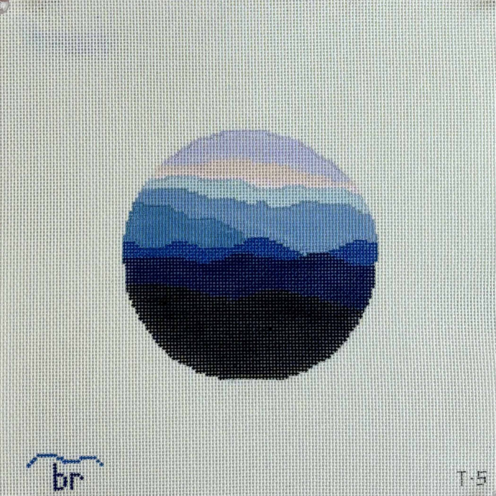 This hand painted needlepoint canvas from Blue Ridge Stitchery features an abstract mountain scape in shades of dusky blue.