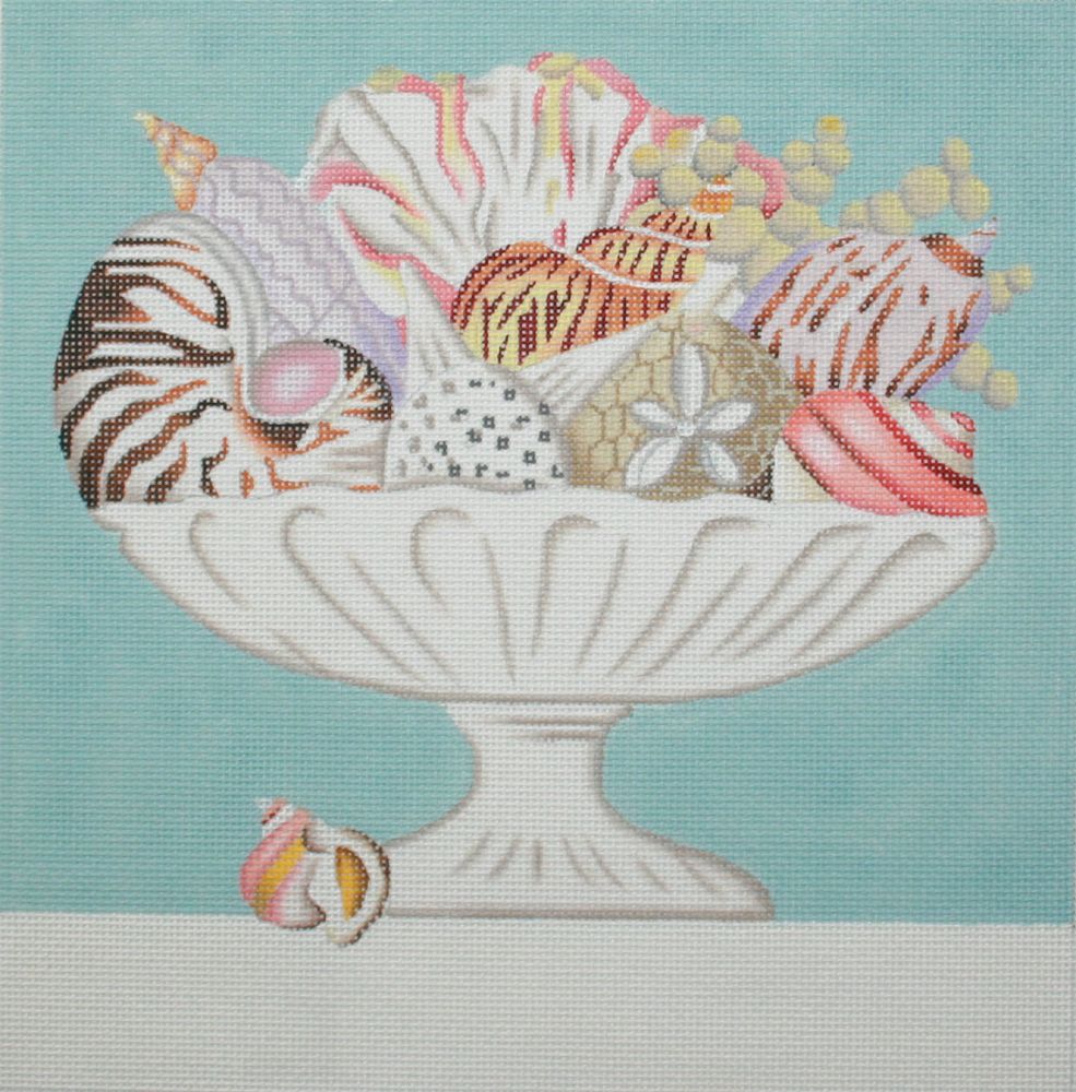 A beautiful hand painted needlepoint canvas from Melissa Shirley Designs. Blue Shell Compote.