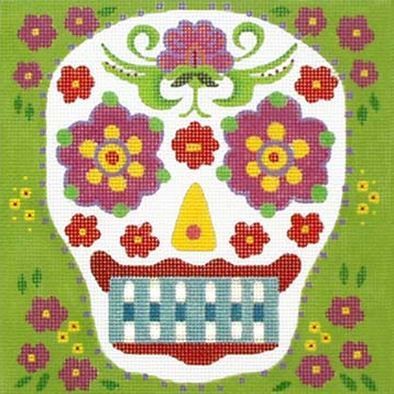 Melissa Shirley Designs Blue Tooth Sugar Skull Needlepoint Canvas
