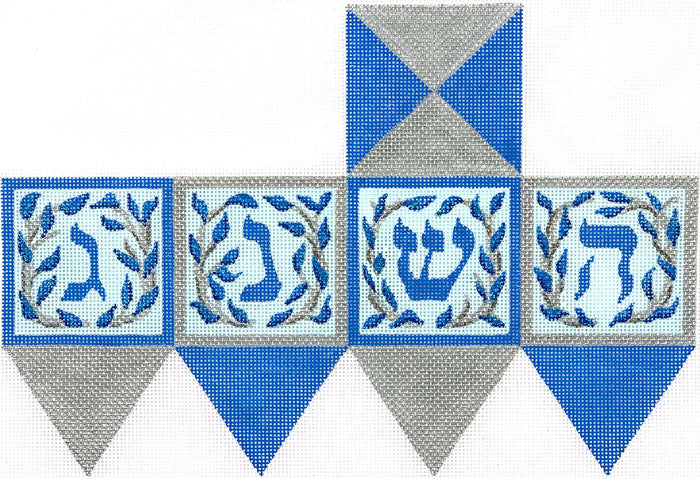 Kate Dickerson Needlepoint Collections Bright Funky Patterns Dreidel Blues & Silver Needlepoint Canvas