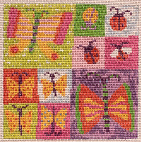 Birds of a Feather Butterfly Collection Red Needlepoint Canvas