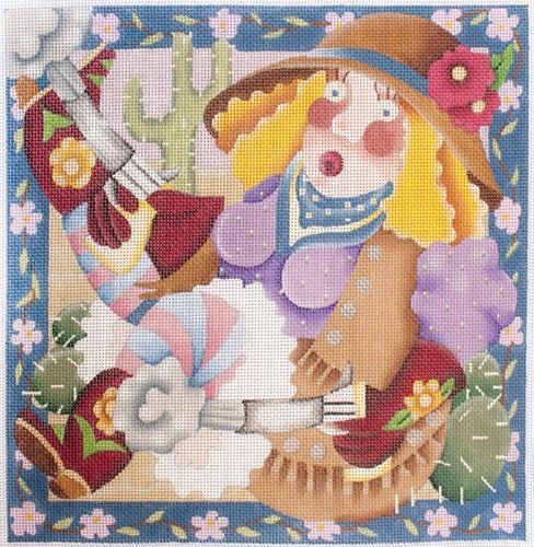 A beautiful hand painted needlepoint canvas from Melissa Shirley Designs. Calamity Jane Pillow.