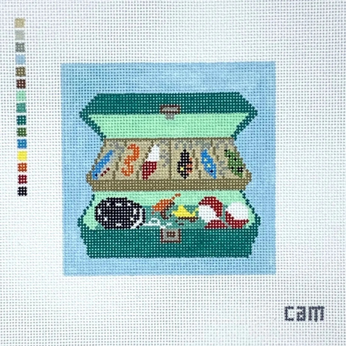 This hand painted needlepoint canvas by CAM Designs features a grill filled with classic summer fare.