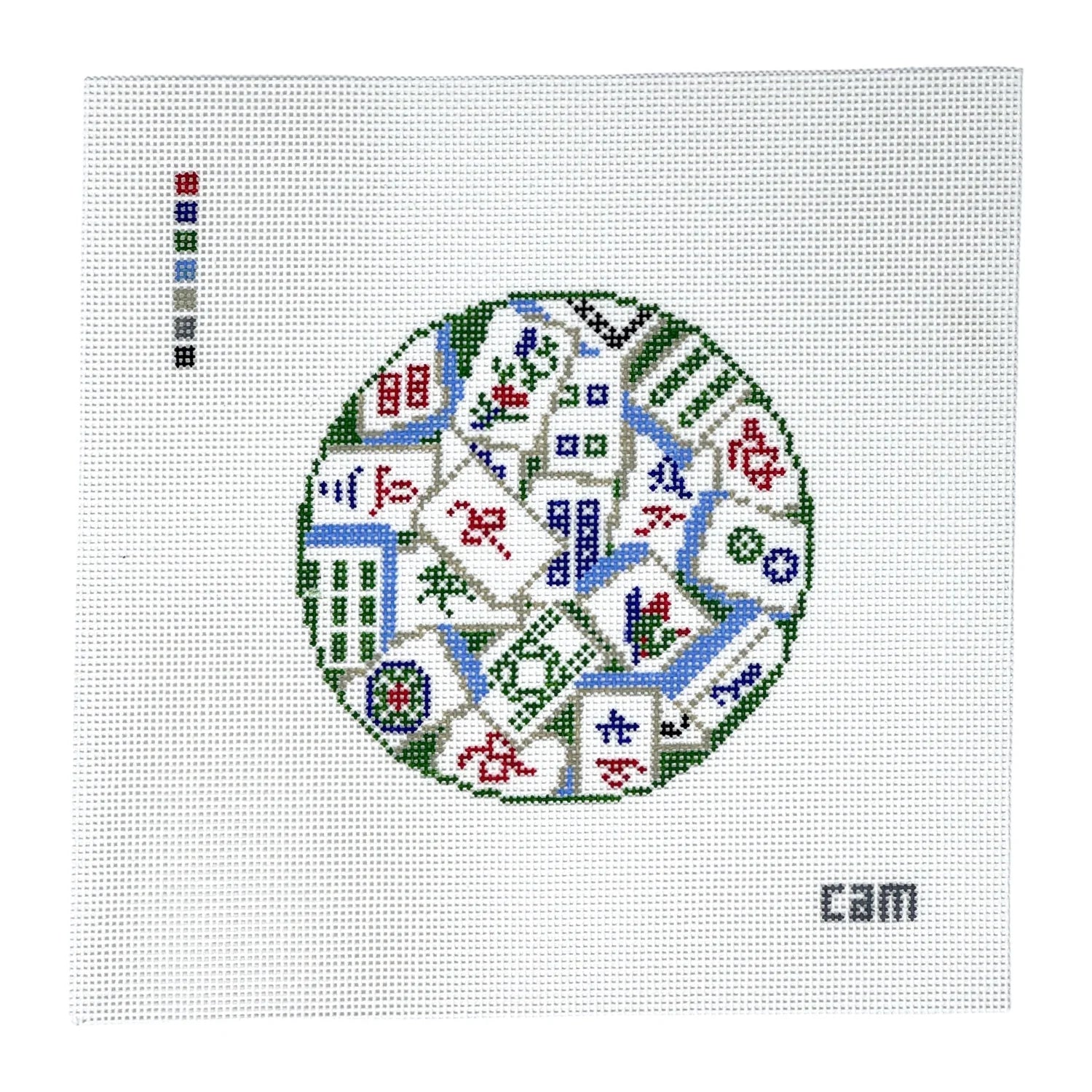 This hand painted needlepoint canvas by CAM Designs features a grill filled with classic summer fare.