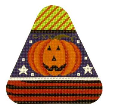 A beautiful hand painted needlepoint canvas from Melissa Shirley Designs. Candy Corn Jack O Lantern.