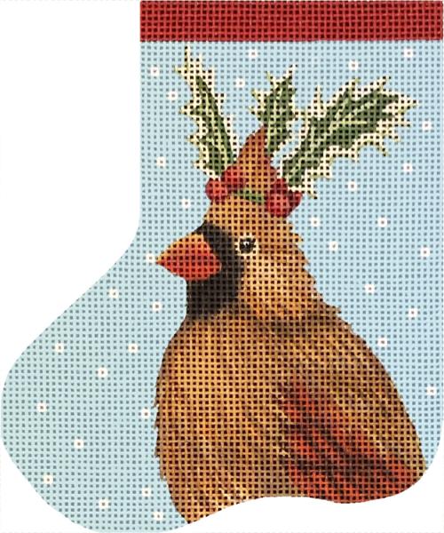 Melissa Shirley Designs Cardinal/Holly Mini Stocking Needlepoint Canvas