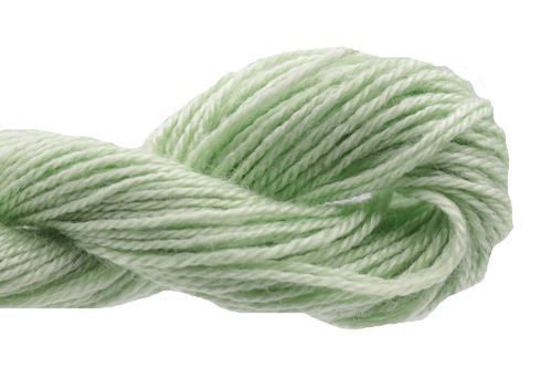 This is Impressions from Caron Collection in color 5015 Sage Green. A soft silk-wool blend with buildable coverage. 1 or 2 ply on 18 mesh.