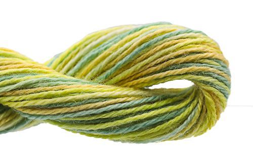 This is Impressions Variegated from Caron Collection in color 094 Lemon Meringue. A soft silk-wool blend with buildable coverage. 1 or 2 ply on 18 mesh.