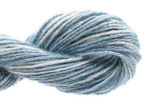 This is Impressions Variegated from Caron Collection in color 159 Silver Blue. A soft silk-wool blend with buildable coverage. 1 or 2 ply on 18 mesh.