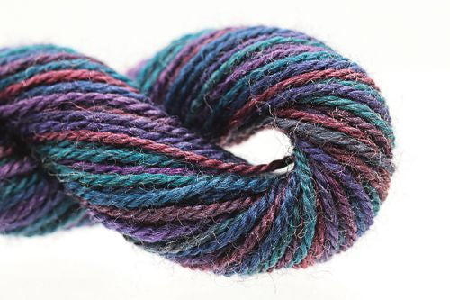 This is Impressions Variegated from Caron Collection in color 163 Plum. A soft silk-wool blend with buildable coverage. 1 or 2 ply on 18 mesh.