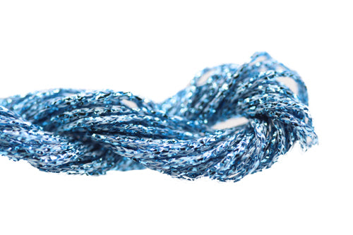 This is Snow from Caron Collection in color 3 Sky Blue. A synthetic sparkle. 1 ply on 18 mesh.