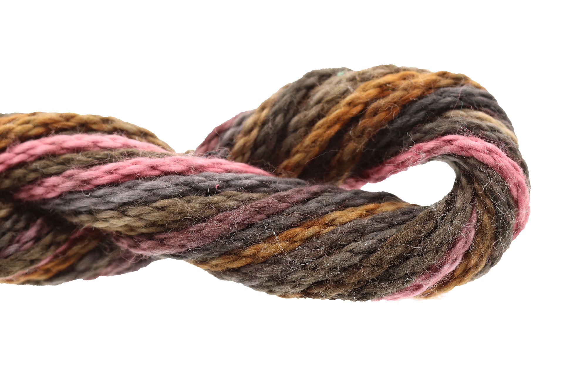 This is Watercolours from Caron Collection in color 109 Java. Rich variegated colors in stranded cotton. 2 strands on 13 mesh 1 strand on 18 mesh. 1 strand is about equivalent in size to #5 Perle Cotton.