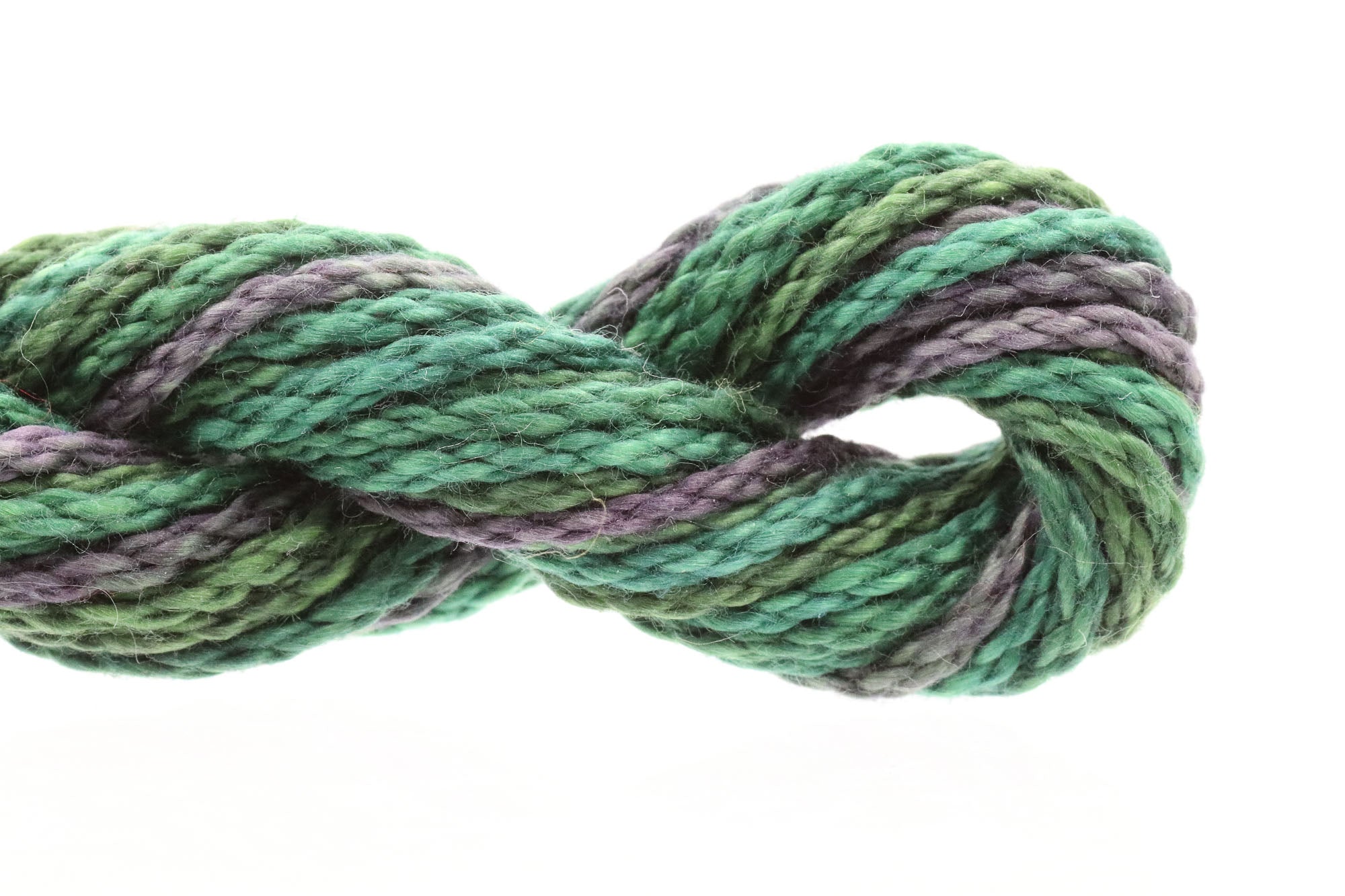 This is Watercolours from Caron Collection in color 140 Blackwatch. Rich variegated colors in stranded cotton. 2 strands on 13 mesh 1 strand on 18 mesh. 1 strand is about equivalent in size to #5 Perle Cotton.