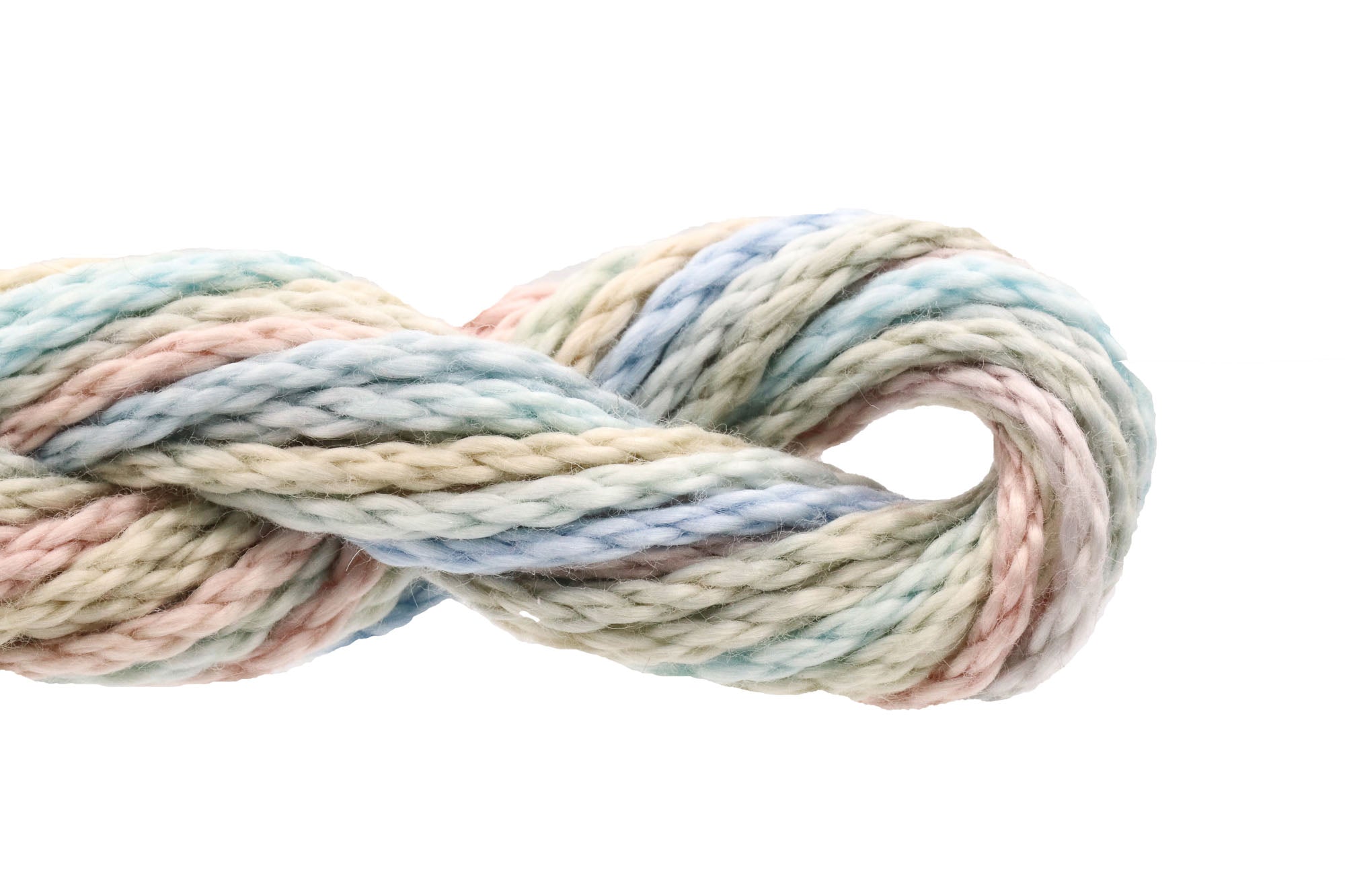 This is Watercolours from Caron Collection in color 147 Winter Sky. Rich variegated colors in stranded cotton. 2 strands on 13 mesh 1 strand on 18 mesh. 1 strand is about equivalent in size to #5 Perle Cotton.