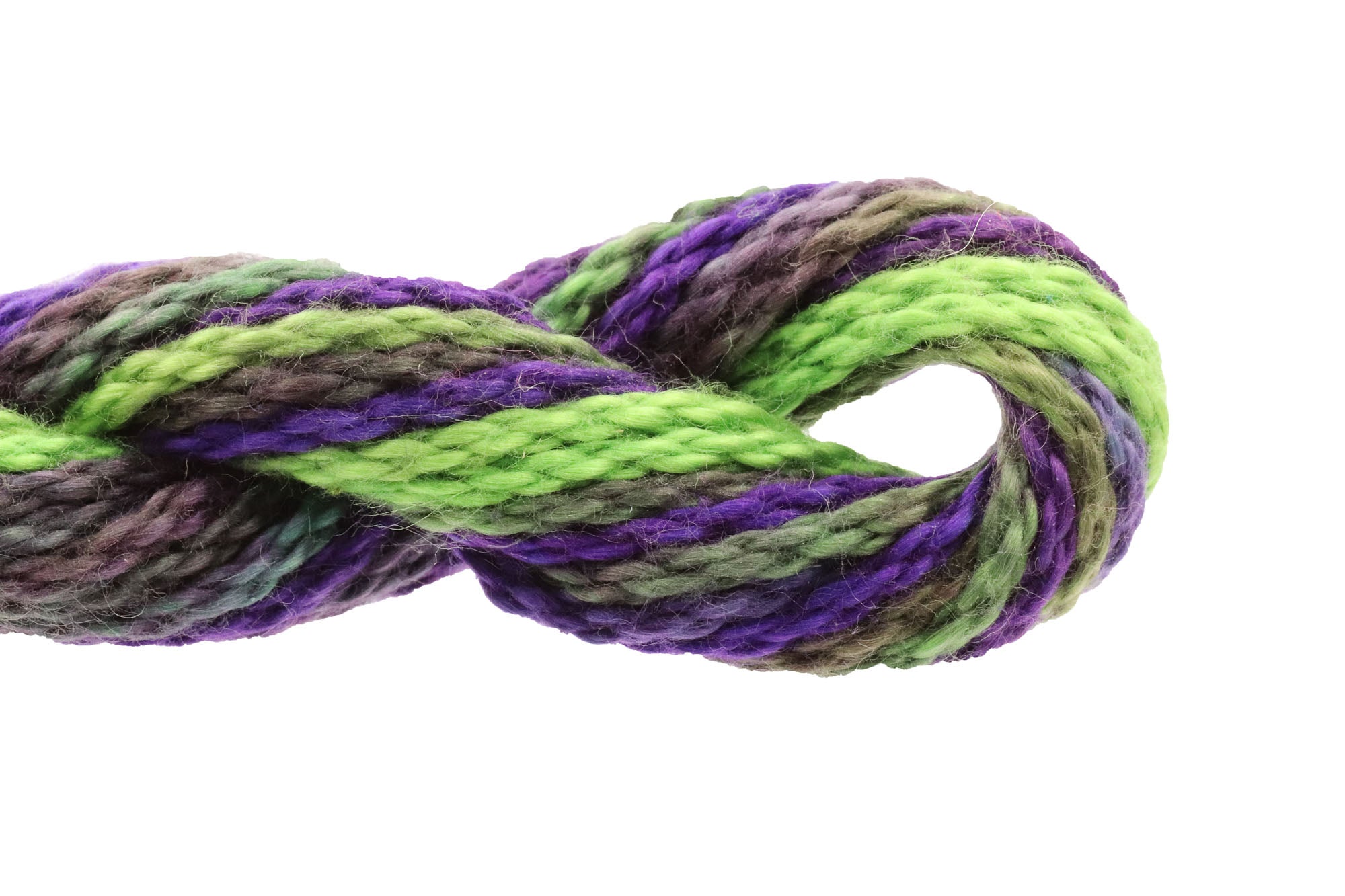 This is Watercolours from Caron Collection in color 153 Distant Hills. Rich variegated colors in stranded cotton. 2 strands on 13 mesh 1 strand on 18 mesh. 1 strand is about equivalent in size to #5 Perle Cotton.