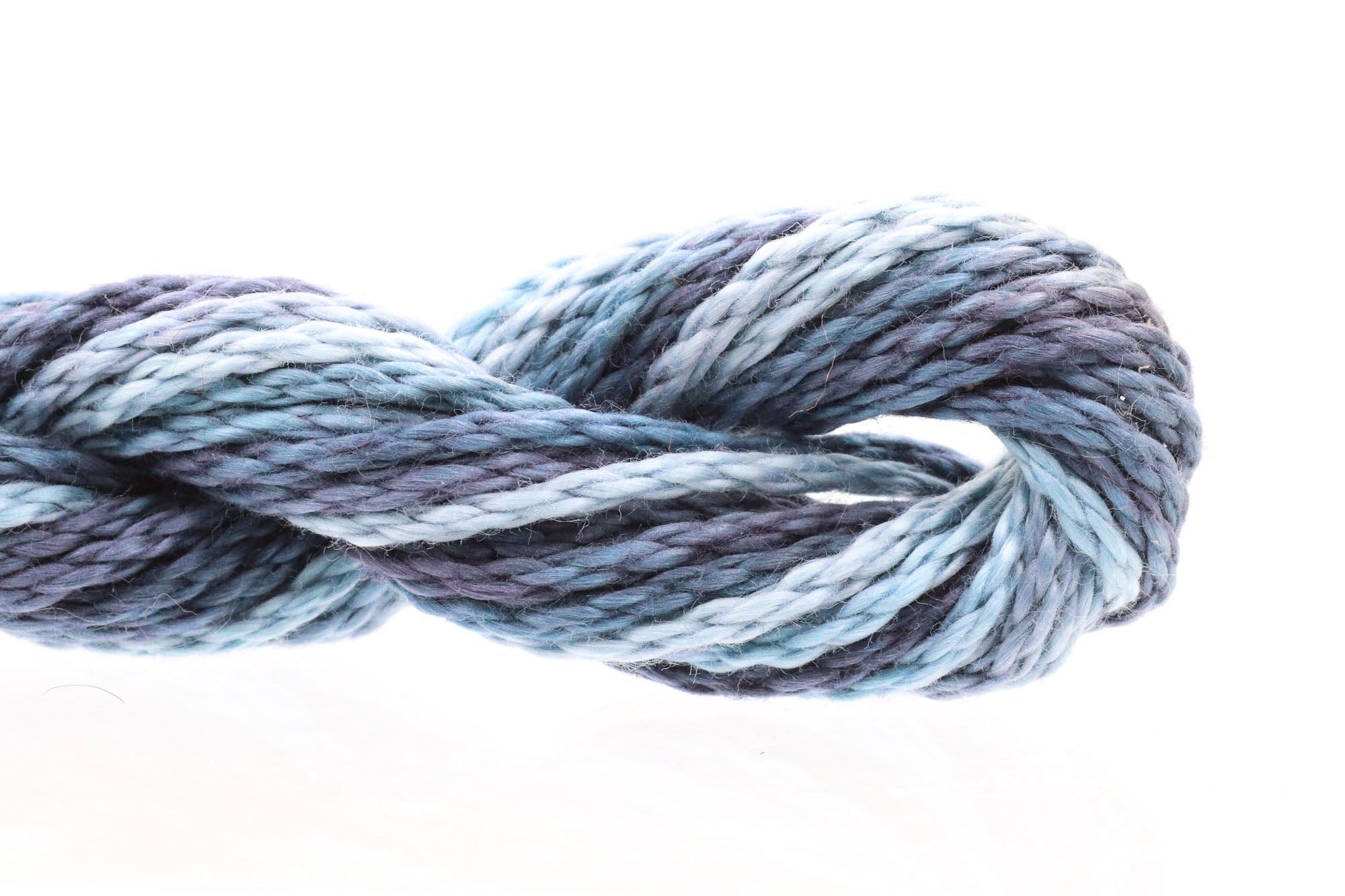 This is Watercolours from Caron Collection in color 157 Polar Ice. Rich variegated colors in stranded cotton. 2 strands on 13 mesh 1 strand on 18 mesh. 1 strand is about equivalent in size to #5 Perle Cotton.